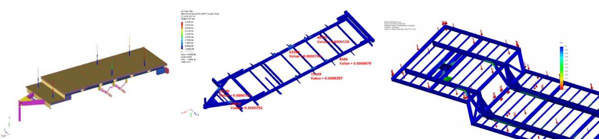 | Stiffness Optimization | Ensuring the frame resists deflection, vibration, and roll under operational loads while maintaining comfort, control, and long-term durability. | – Managing torsional and bending stiffness levels – Preventing resonance using modal analysis – Iterative refinement using FEA for structure–mass tradeoff |