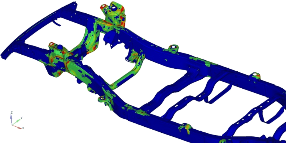 | Weight Optimization | Reducing structural weight while maintaining safety, stiffness, and fatigue life to improve payload capacity, efficiency, and fuel economy. | – Balancing strength and mass in critical stress regions – Material and geometry sensitivity (HSS, aluminum alloys) – Topology optimization through FEA to remove low-stress material |