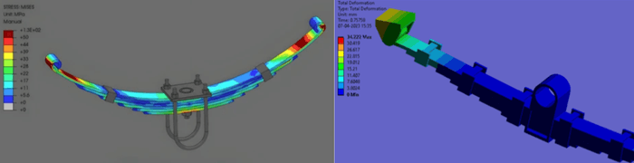 At Caliber Technologies, we leverage MBD and FEA simulations to analyze, validate, and enhance the performance of leaf spring suspensions under real-world conditions.